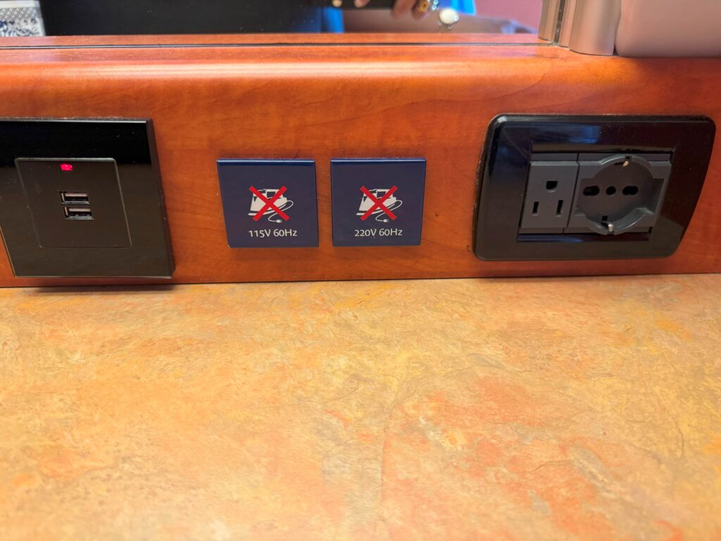 客室には、テレビ、ミニバー、ポット、金庫、ドライヤー、電話などが完備されています。コンセントは日本仕様と充電用のUSB端子があります。