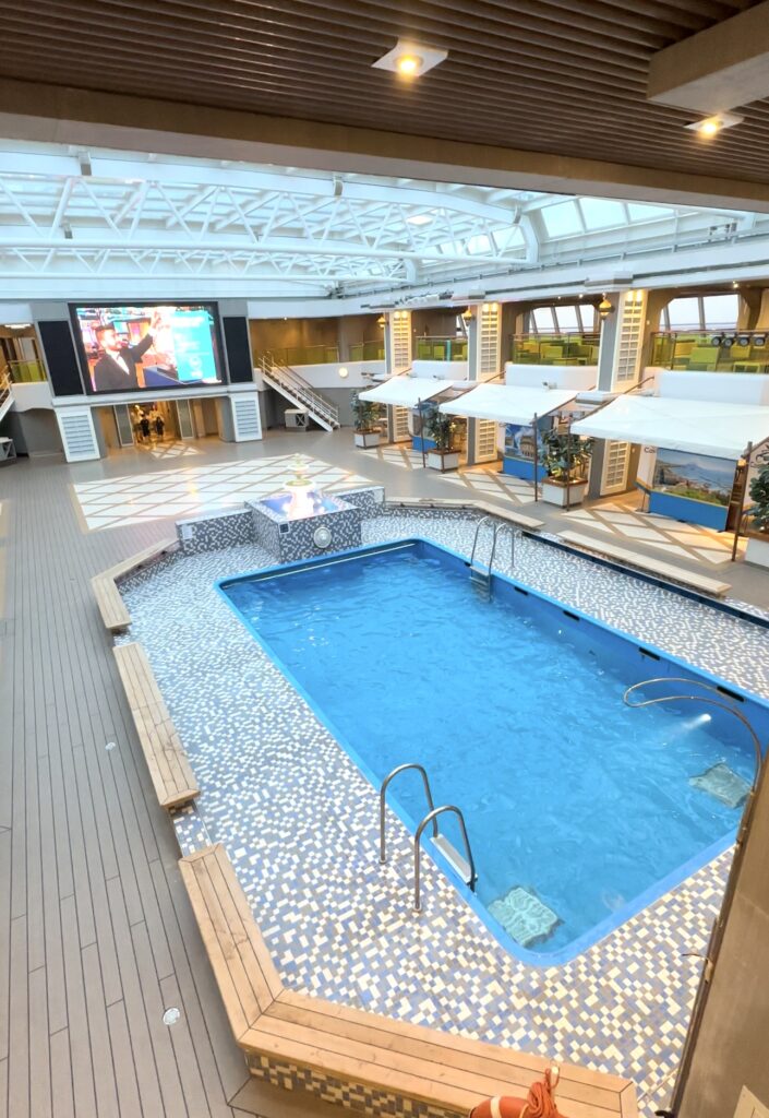 私たちのお気に入りのスポットは、デッキ3にあるカフェバーだ。目の前でピアノの演奏やDJが音を紡ぎ、心地よいサウンドと共においしいドリンクを楽しむことができる。アルコールや一部のコーヒーは有料だが飲み放題のパッケージプランがあるので、お財布を気にしたくない方は加入するのもおススメだ。