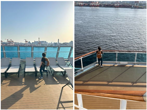 ターミナルへと到着し、チェックインをすまし船内へ。楽しみでたまらない気持ちで先陣をきって進んでいく息子のあとを追いながら船内へ進むとクルーたちが笑顔で出迎えてくれた。