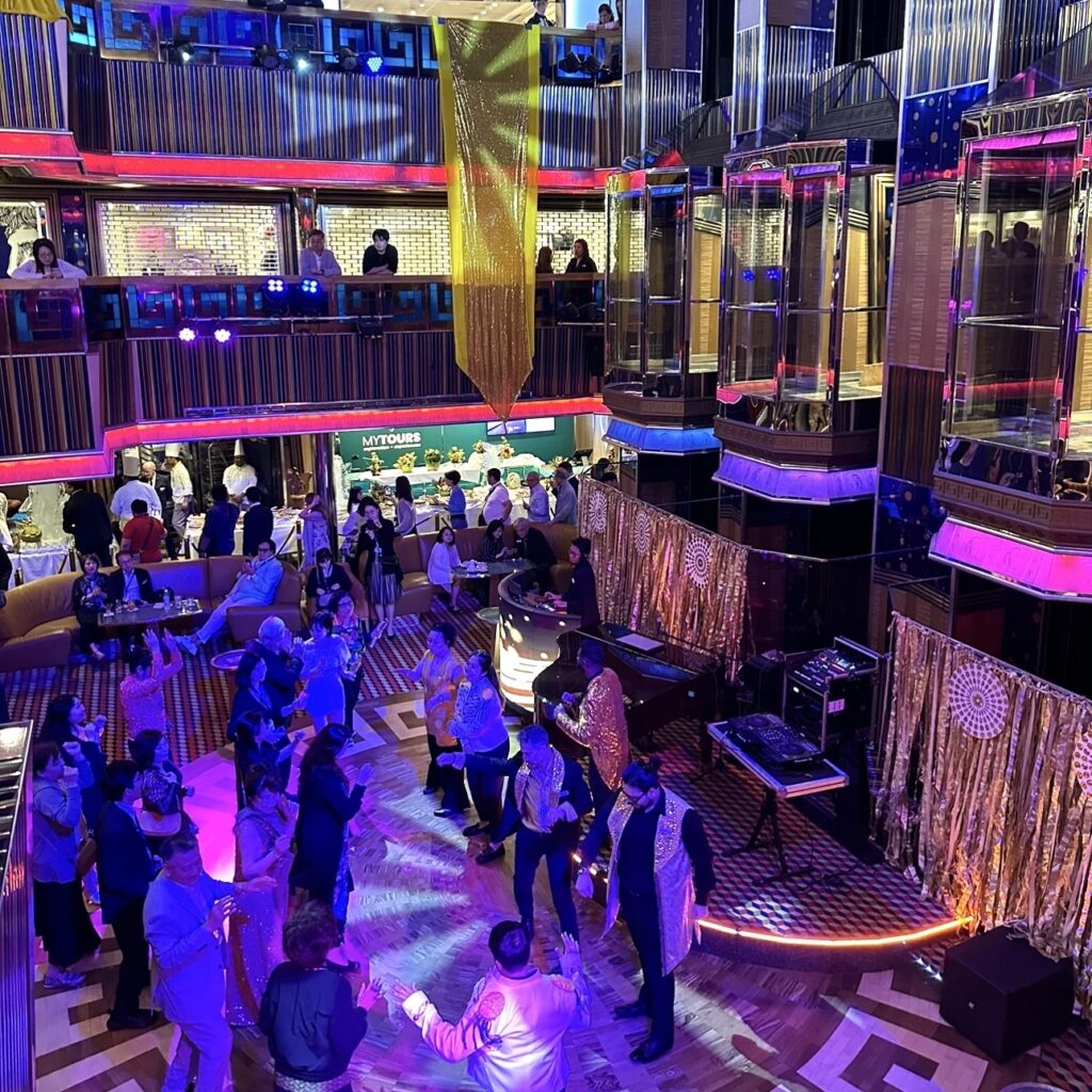 最終日はディナータイムにクルーたちの歌と踊りがあり、乗客のテンションも最高潮!