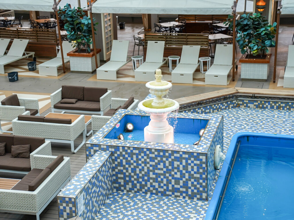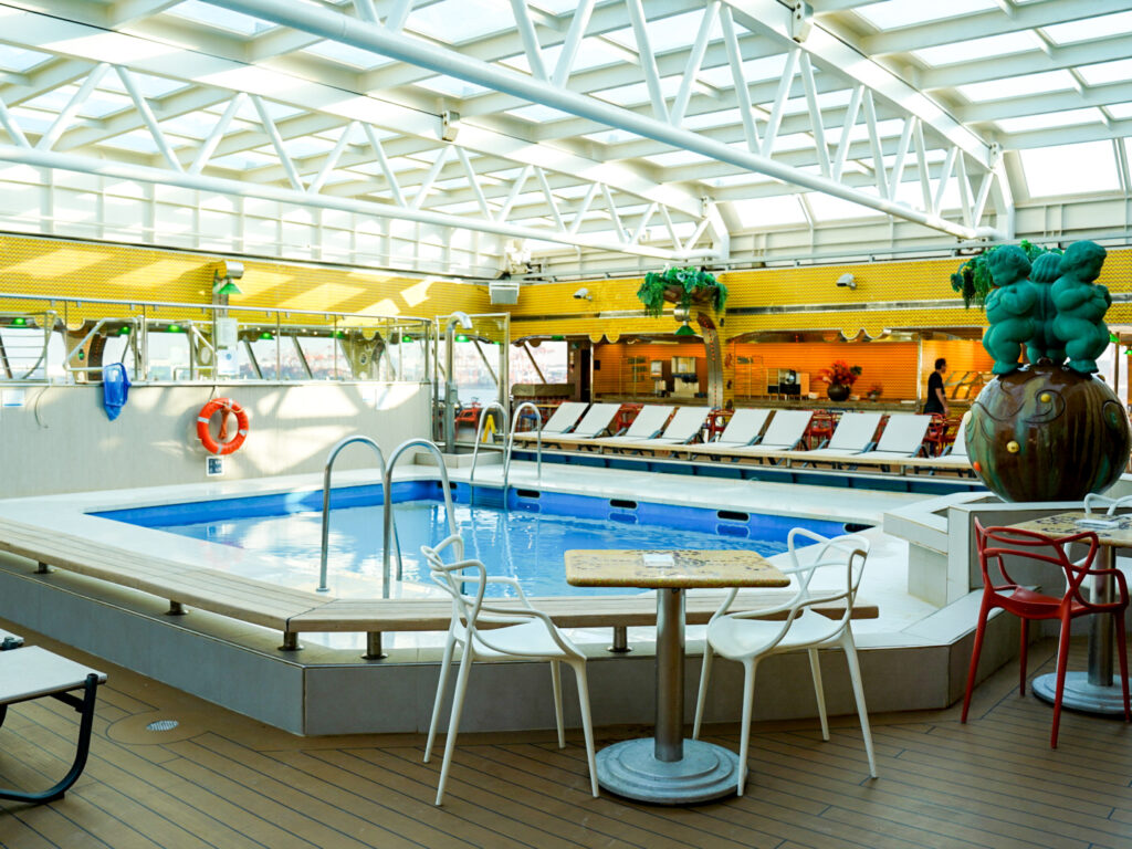 屋上のデッキに位置する「ウォータースライダー」とデッキ中央部分の開閉式の屋根付き全天候型「リドソーレ」、そして船尾にある屋内プール「リドバーソーレ」全部で3ヶ所あります。