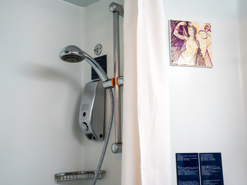 ウェットエリアはカーテンで仕切られたタイプ。温かいお湯にたっぷりの水量で問題なく利用できました。