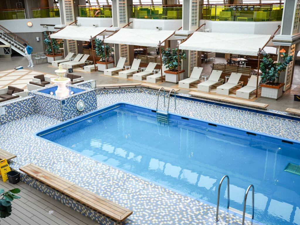 今回の旅程ではお天気が悪かったので屋根は閉まっていることが多かったですが、お天気が良ければ屋外プールにもなるそう。