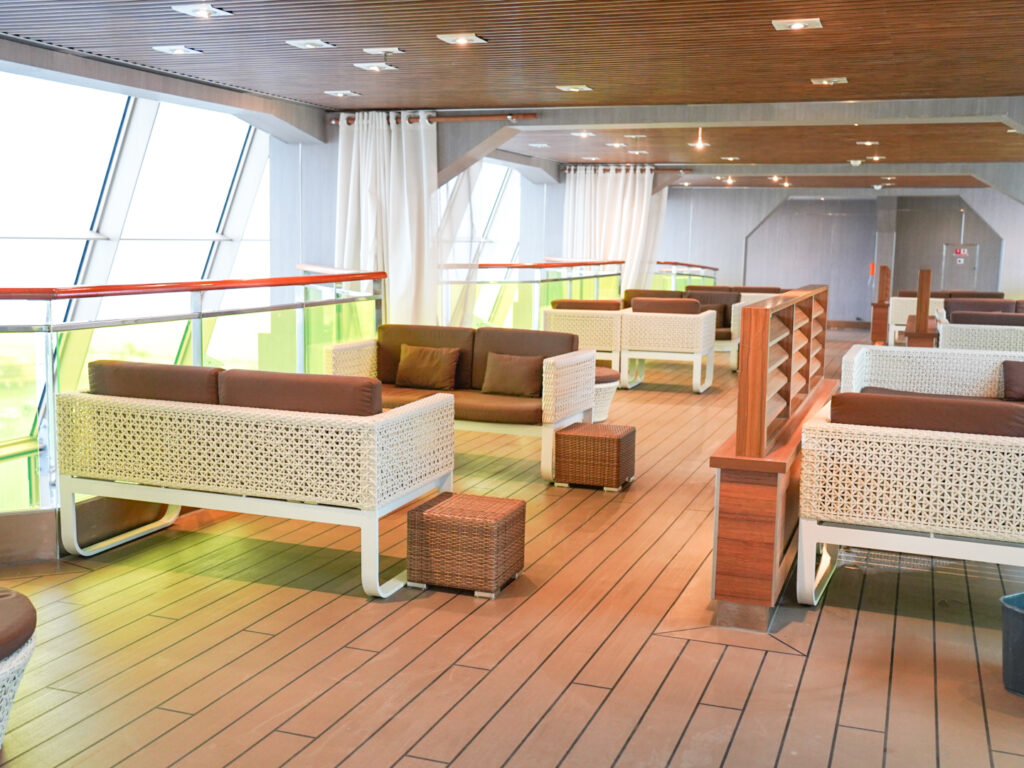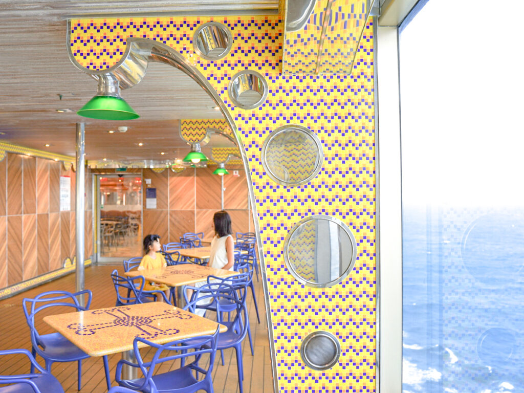 内側キャビンなどを予約しても日中はこのような共有スペースで海を見ながらのんびりと過ごすことができます。