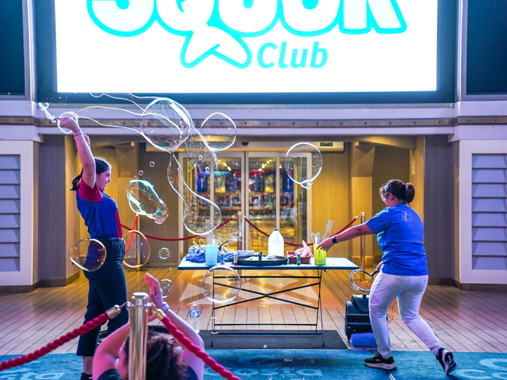 英語に慣れていないお子様だとご心配されるかもしれませんが、コスタクルーズでは親子で参加できるダンスパーティーやバブルパーティーを通じて遊びながら身近に英語にふれることができます。