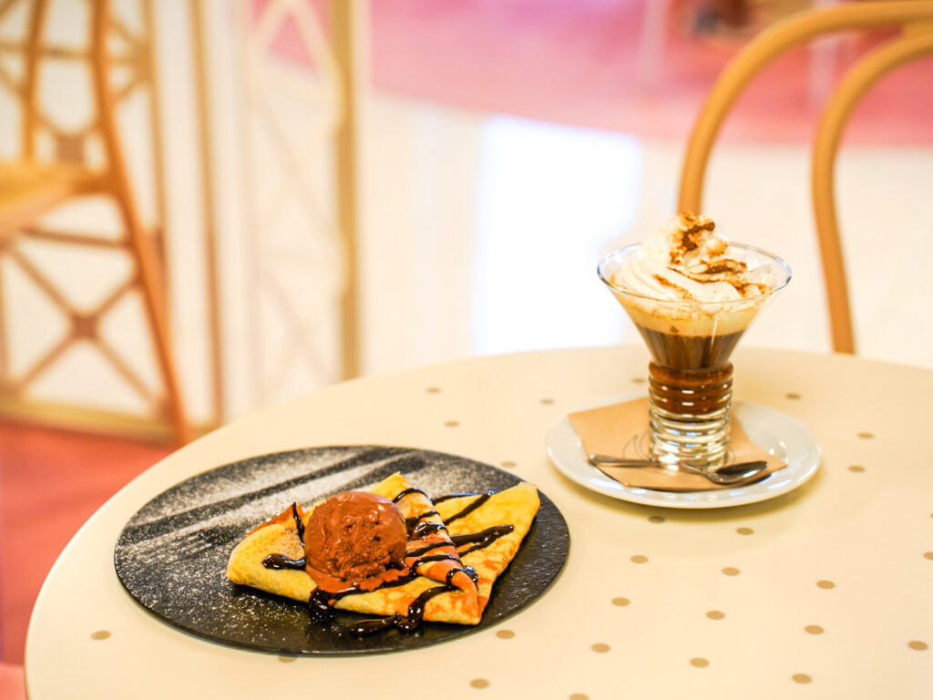 ジェラートやクレープ、マカロンやチョコラなどが有料でいただけます。