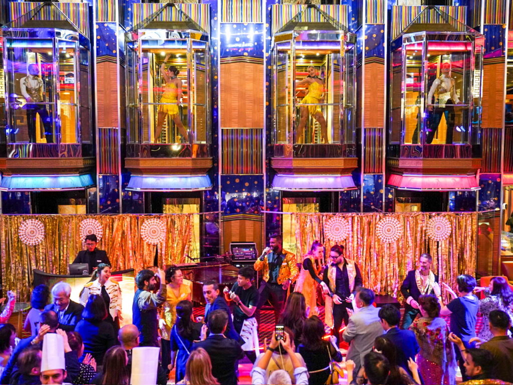 普段はダイニングで働いているスタッフの突然の歌やダンスはクルーズ最後の夜を盛り上げる最高に楽しいイベントなので必見です。