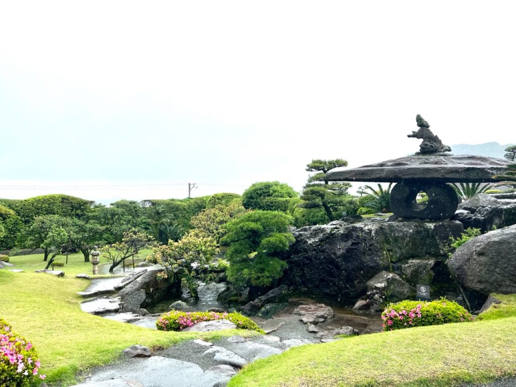 桜島の絶景を望む仙巌園に来ましたが、残念ながらこの日は大雨。