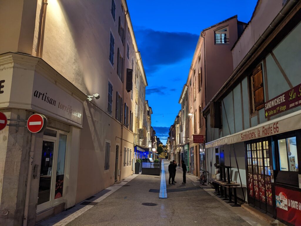 よほどのワイン好きでも通り過ぎるブルゴーニュの小都市ですが、南仏の夏特有の夜の21時でも空に蒼さが残り、美しい夕方と夜のはざまに知らない街を歩いてみるという、藤代清治の影絵の中のような体験を楽しみました。