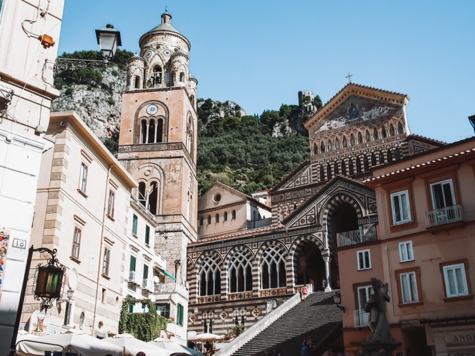アマルフィ大聖堂は町の中心部のドゥオーモ広場から階段を上った場所にあります。