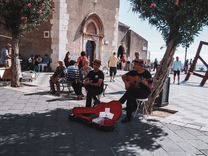 タオルミーナ サン・ジュゼッペ教会前ではギターの生演奏があってました。