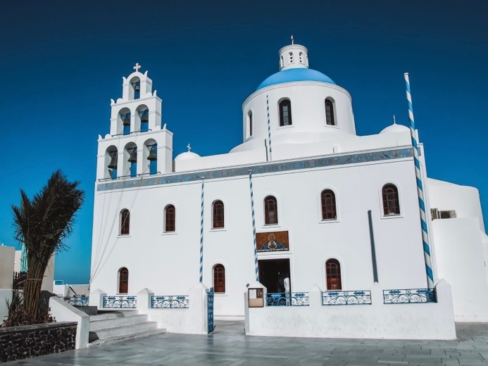 サントリーニ島1番人気のイア。ブルードームの教会が島内にはいくつもありました。