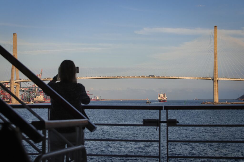 ▸長崎港の入港・出港時には、「女神大橋」をくぐる瞬間だけでなく、長崎港の玄関口にある「岬のマリア像」をお見逃しなく