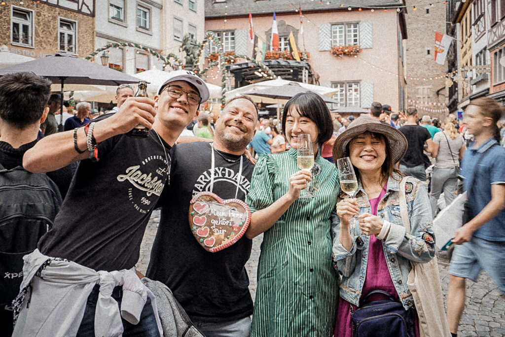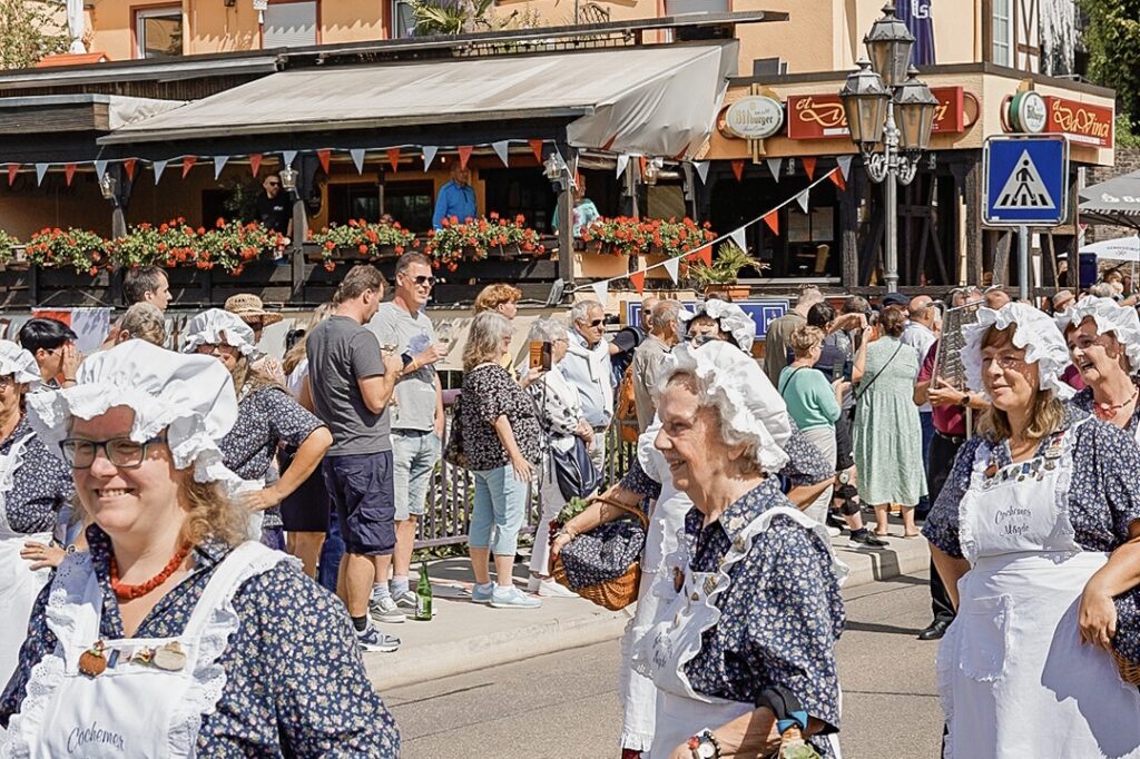 さて、この日のコッヘムは年に一度のワインフェスティバルの最終日で大盛り上がり。伝統衣装を着た人々が街中をパレードしていてすっかりお祭り気分でした。