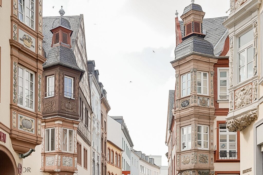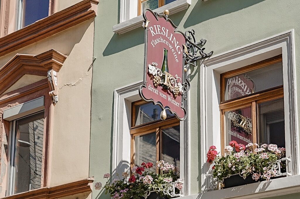 トラーベン=トラーバッハもベルンカステルもモーゼル川沿いのかわいらしい街並みが有名です。リースリングワインの看板が可愛かった…!