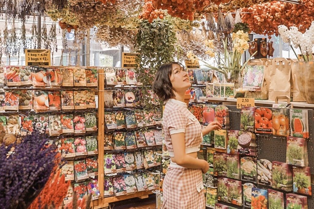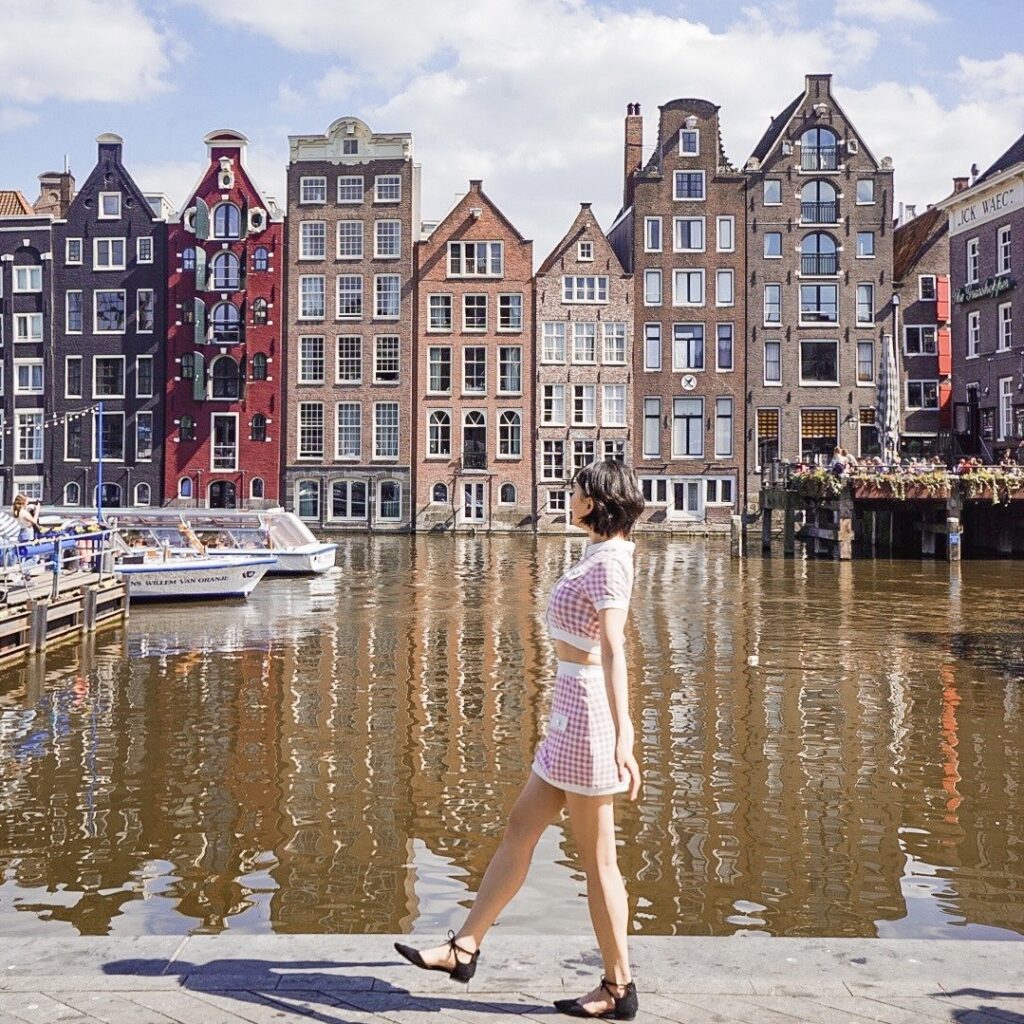 定番のフォトスポットはDamrak。Bloemenmarktというお花屋さんに寄るのもオランダらしい。