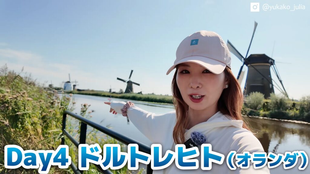 4日目に訪れるドルトレヒト近郊のキンデルダイクは風車が立ち並び、ユネスコ世界遺産に登録されているスポット。川沿いに連なる風車の姿は、まさにオランダの原風景です。