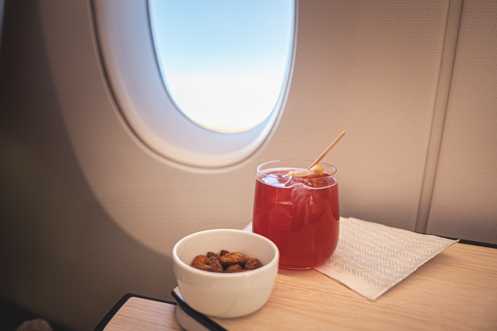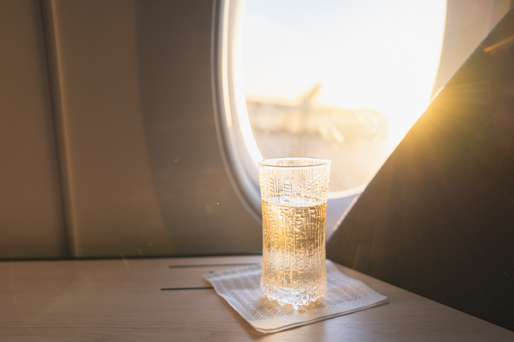 シートに着席すると、ウェルカムドリンクが配られます。