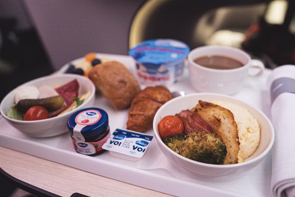気がついた時には着陸前の朝食の時間に!もっと乗っていたかった…と思わず思ってしまったほどの、快適で心躍るビジネスクラスの空の旅でした。