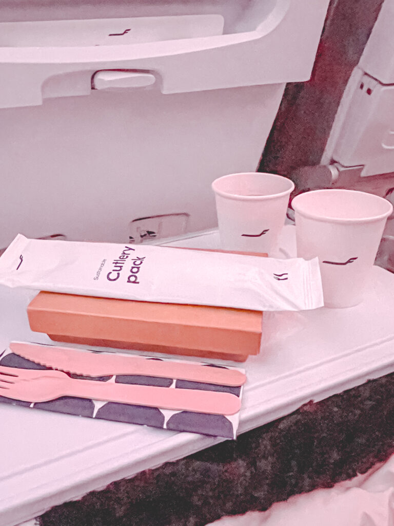 フィンエアーは、北欧デザインのシンプルでスタイリッシュな機内。マリメッコのデザインや、北欧の食が楽しめる。北極圏を通過するルートにも興味がありました。(運がよければオーロラもみられる可能性も!)
