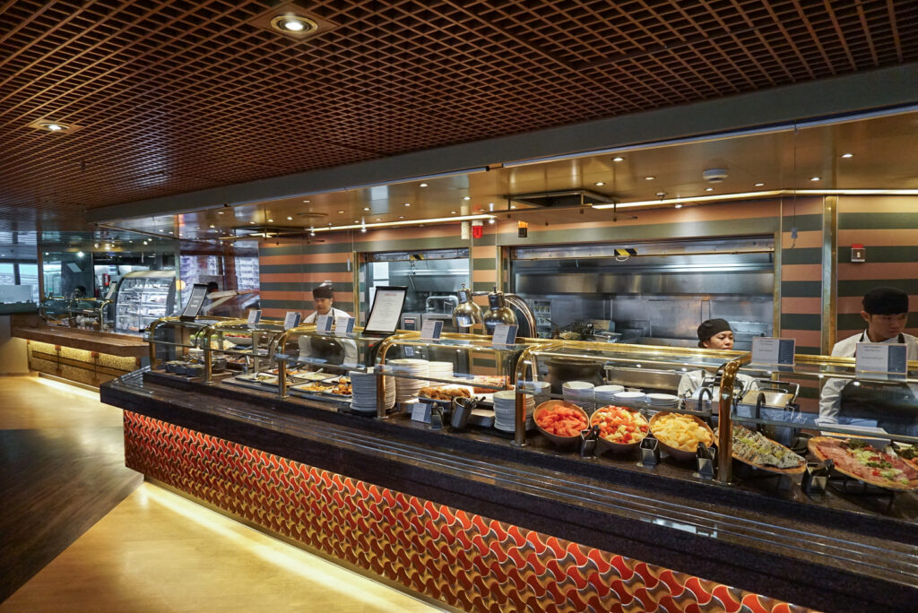 カジュアルに楽しみたいなら、ブッフェレストランの「リドマーケット」がおすすめ。船内ブッフェのイメージといえば「お手軽さ重視」で「味は二の次」という印象を持っている人もいるのでは。