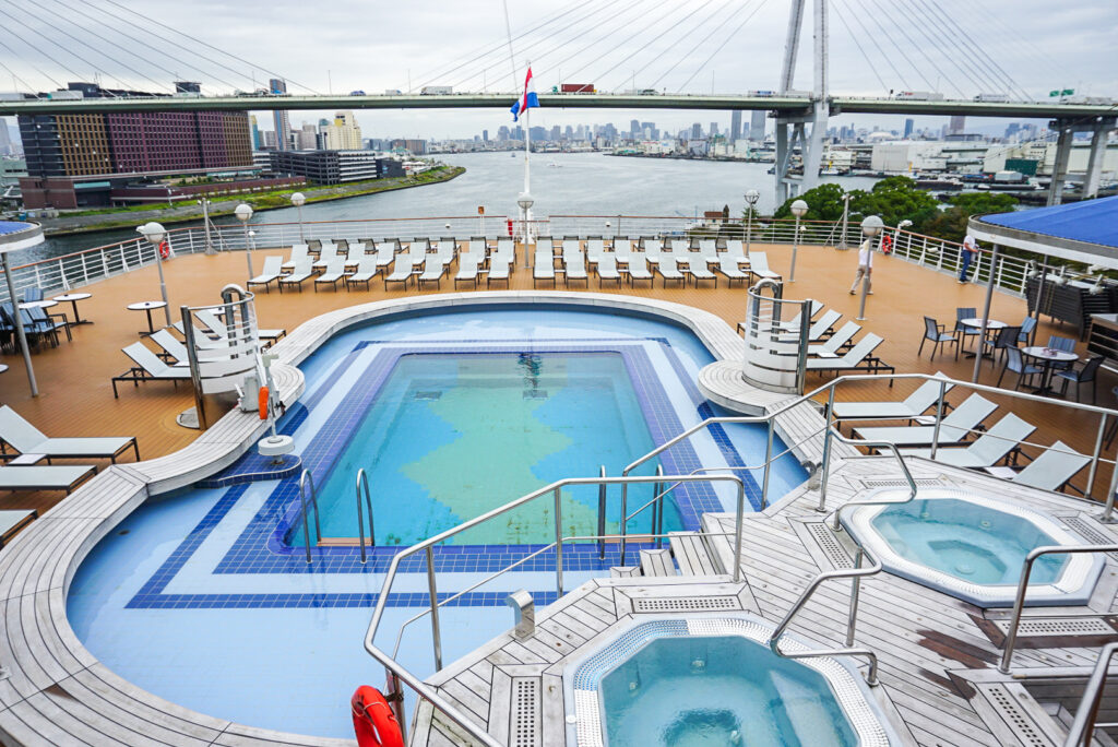季節や天気を問わずに使える全天候型の「リドプール」も併設しています。開閉式の屋根があり、航路による制限も心配ありません。