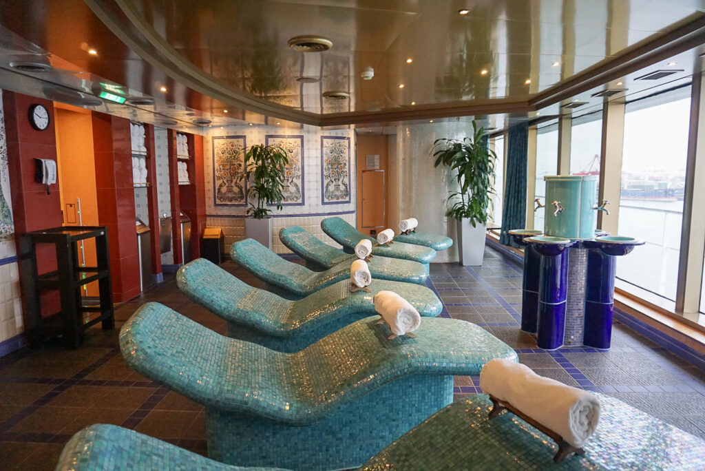 さらに非日常感を味わいたい人には、トルコの浴場を彷彿させる「サーマル・スイート」がおすすめ。海を眺めながらあたたかなリクライニングチェアの上に横たわれば、体の芯からポカポカに。とくに寒い地域を巡る航路で人気だというのも頷けます。