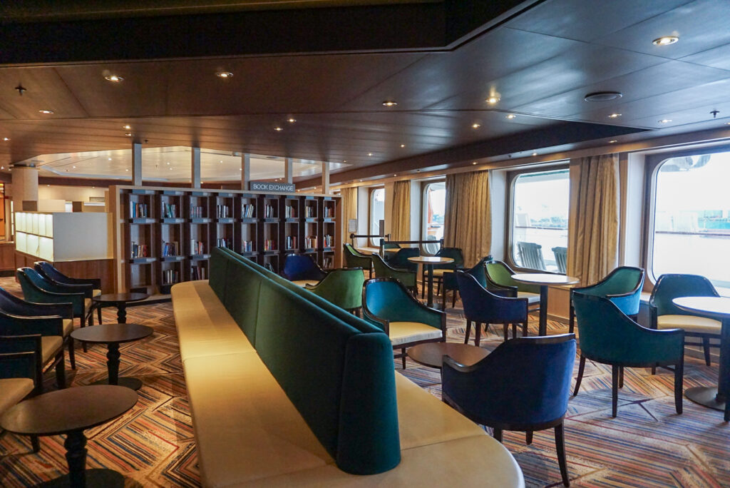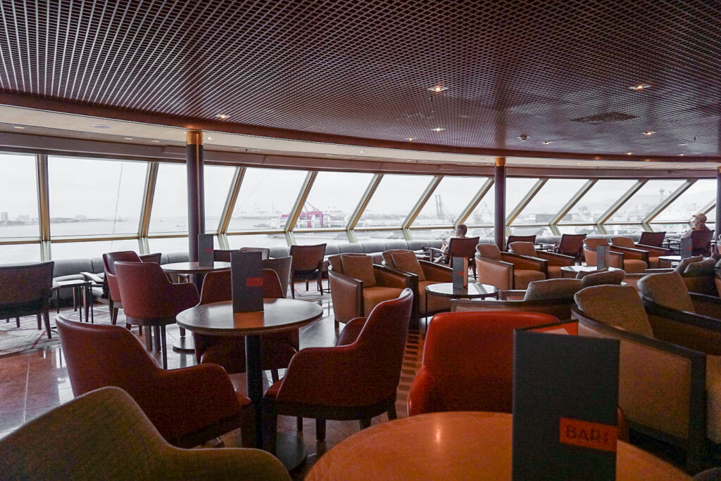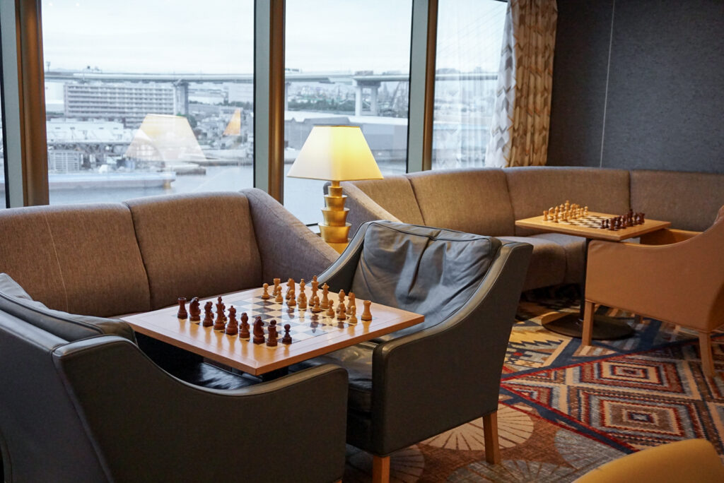 オブザベーションデッキの船首に位置する「クロウズネスト」は、270度のパノラマビューが自慢のラウンジ。チェスやボードゲームなども用意されているので、カジュアルに使える憩いの場です。