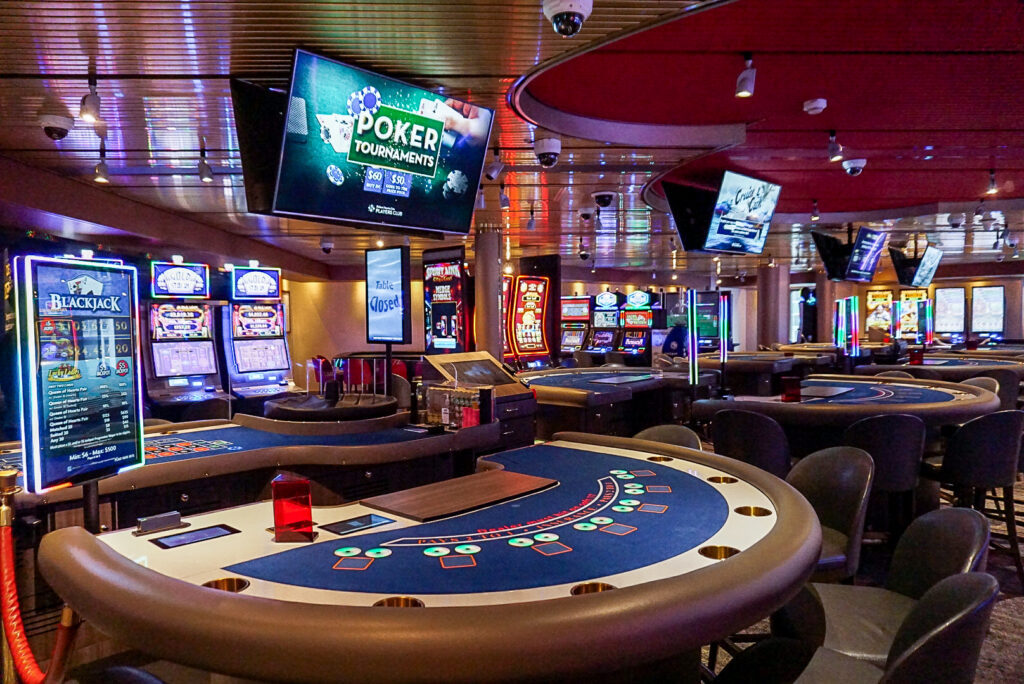 スロットマシン、ブラックジャック、ポーカーなど、さまざまなゲームが楽しめる「カジノ」のコーナー。初心者のゲストもトライできるよう、ディーラーが無料でレクチャーしてくれるので安心です。