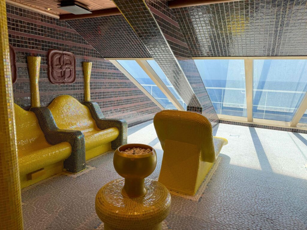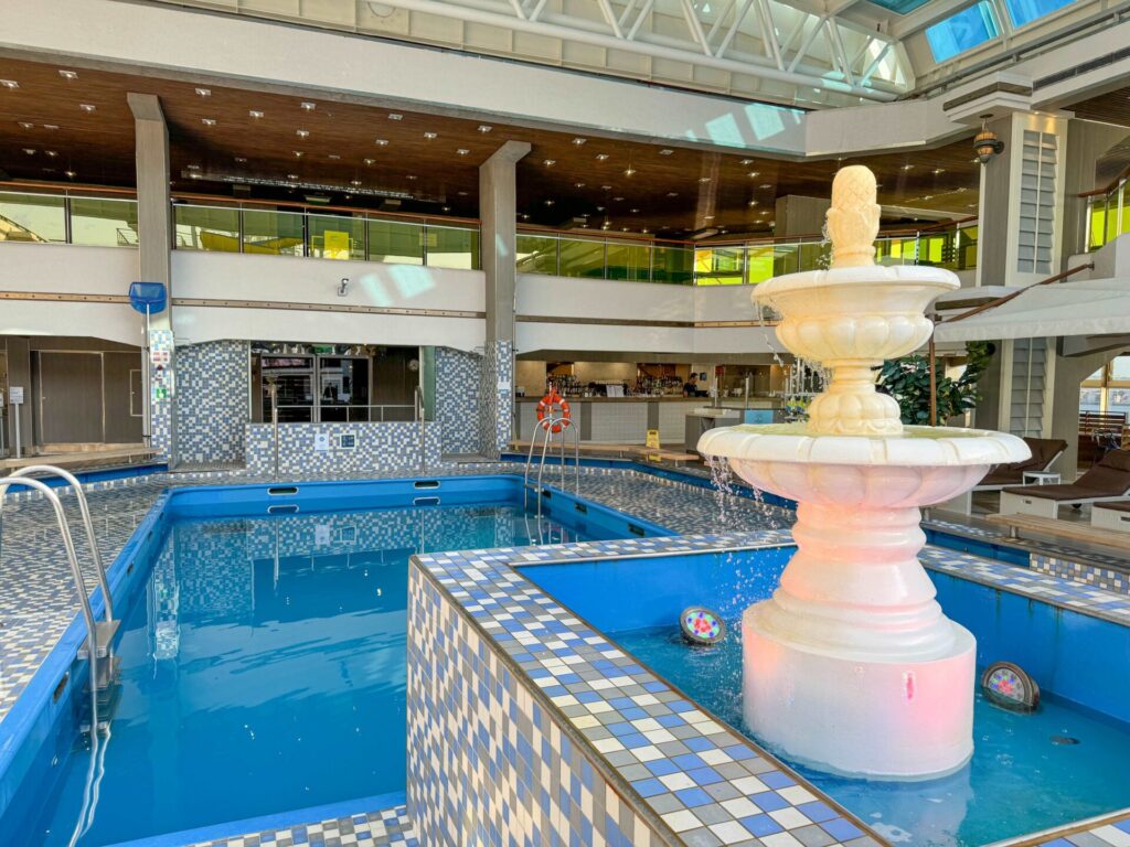クルーズ3日目、鹿児島へ。この日はあいにくのゲリラ豪雨だったので、船内でまったり過ごしました。船内はスパもあるので、寄港地で降りずに船内で楽しむのもおすすめ。