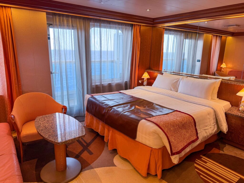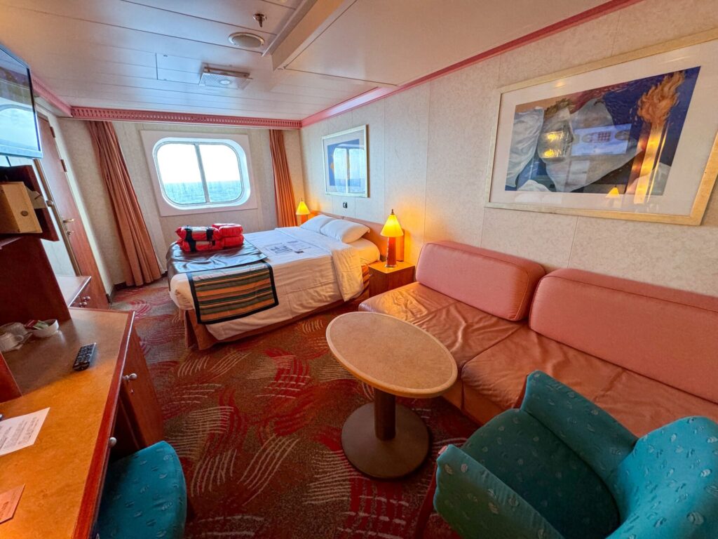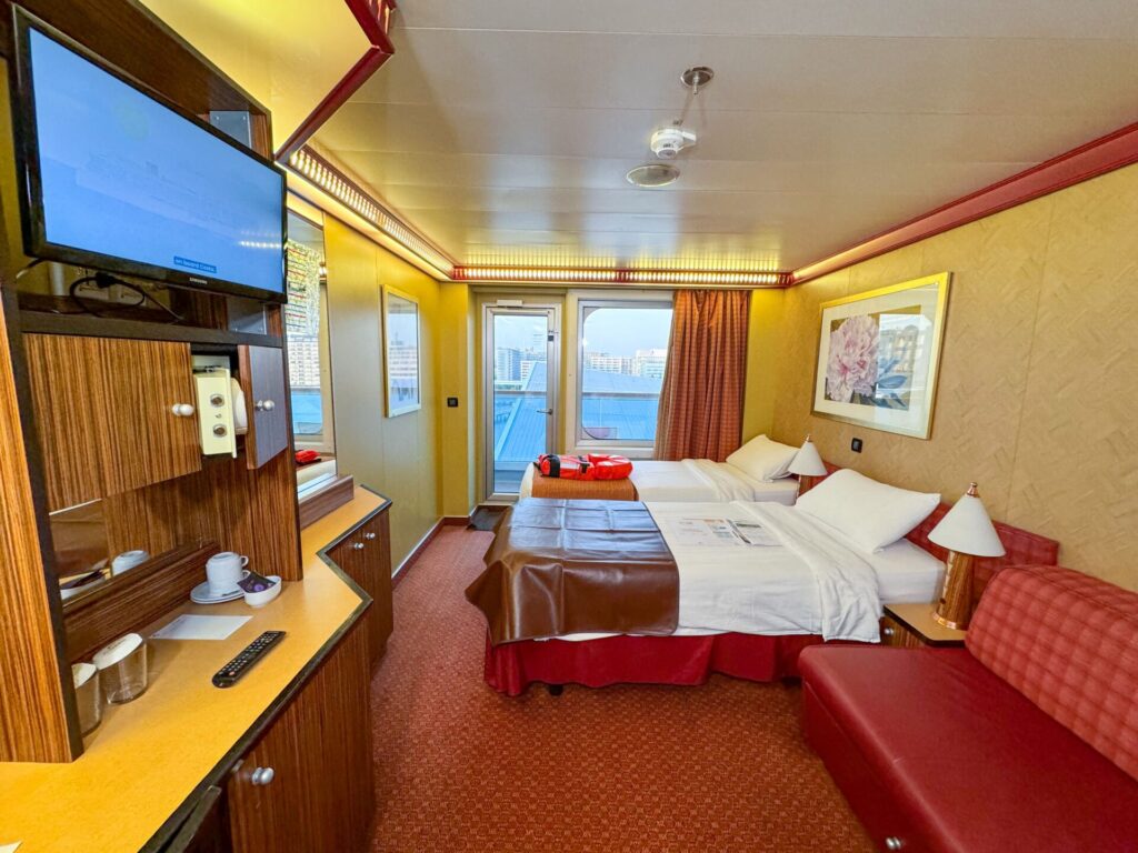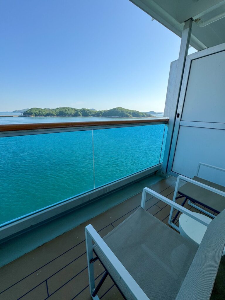 海側バルコニー客室は、想像以上に広々。大きなソファーに収納スペースもたっぷりあって、4泊5日快適に過ごせました。