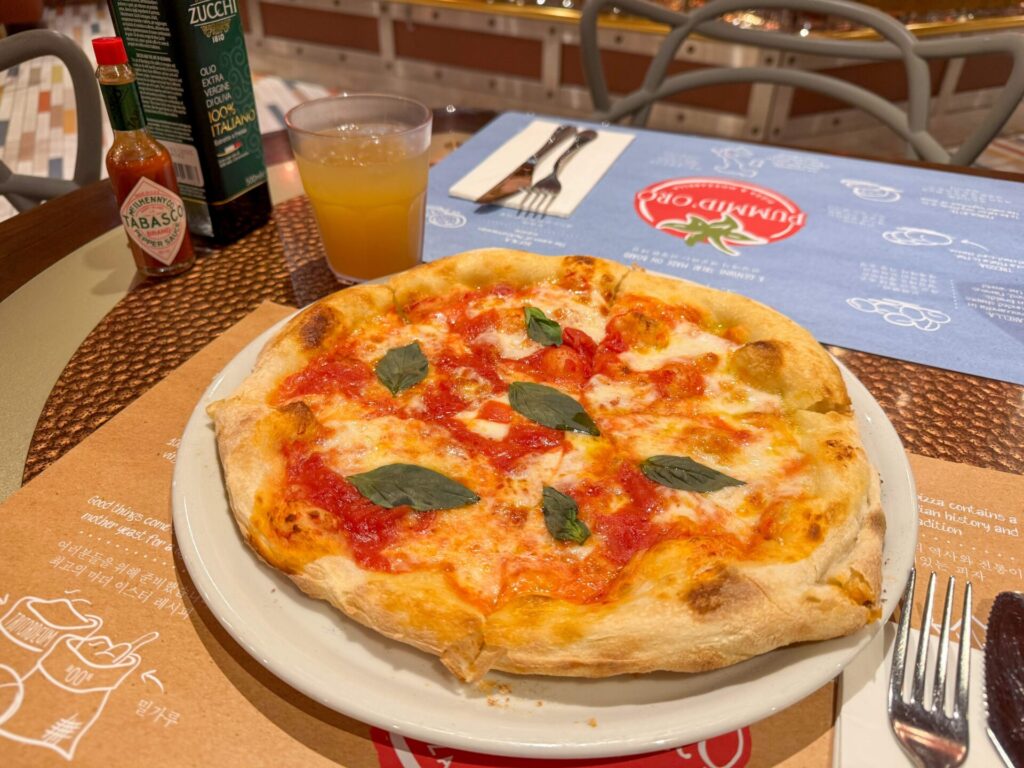 チーズトロトロでもっちもちのナポリピザ美味しかった!寄港地によって食材も変わるんだとか。