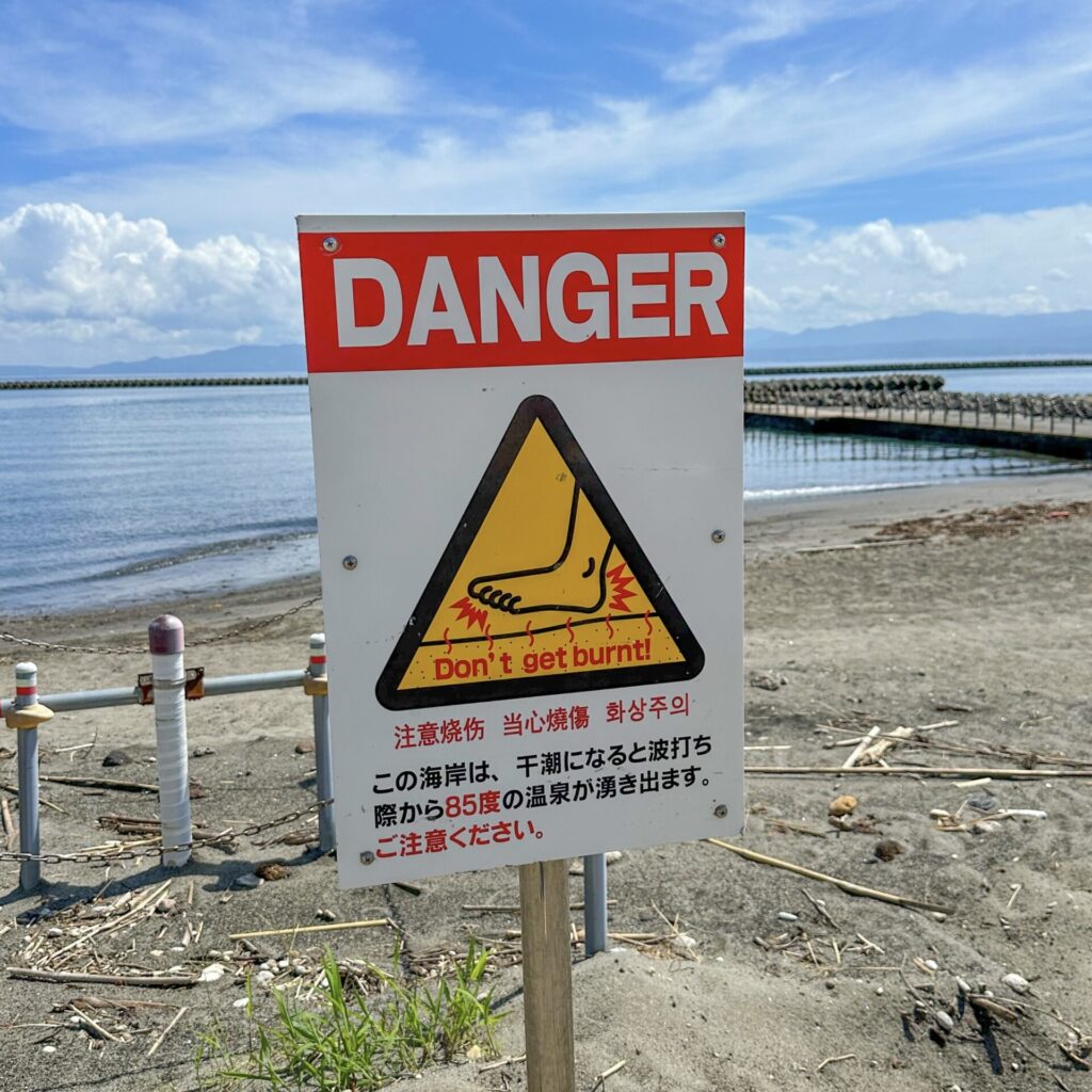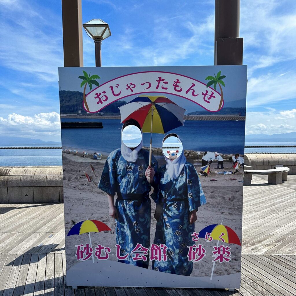 海岸に湧き出る温泉を利用して、砂むしを体験できます!砂に埋もれるのは初めての感覚でワクワク!
