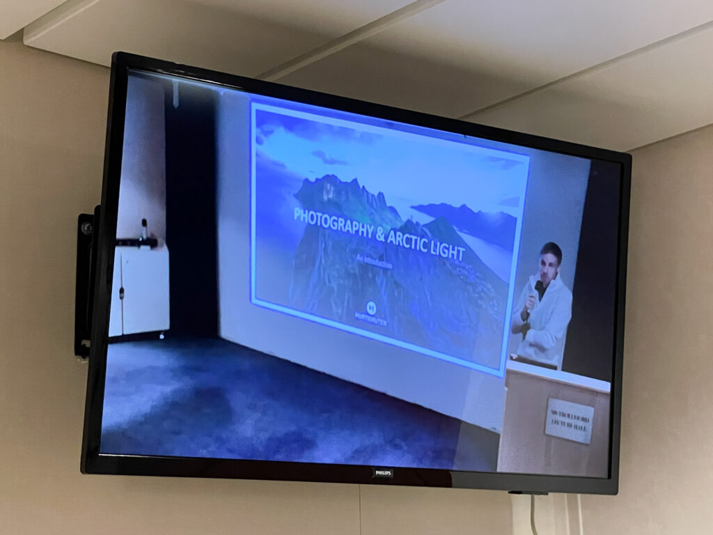 ちなみに、クルーズ船専属カメラマンの方による「オーロラ撮影のポイント解説セミナー」もあって撮影方法の予習もできました。