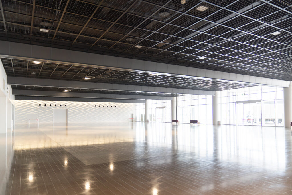 建物は、全面ガラス張りで開放感たっぷり。屋根は日本の海の白波をイメージしたおしゃれなデザインとなっています。