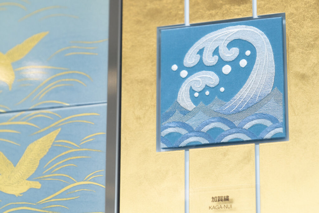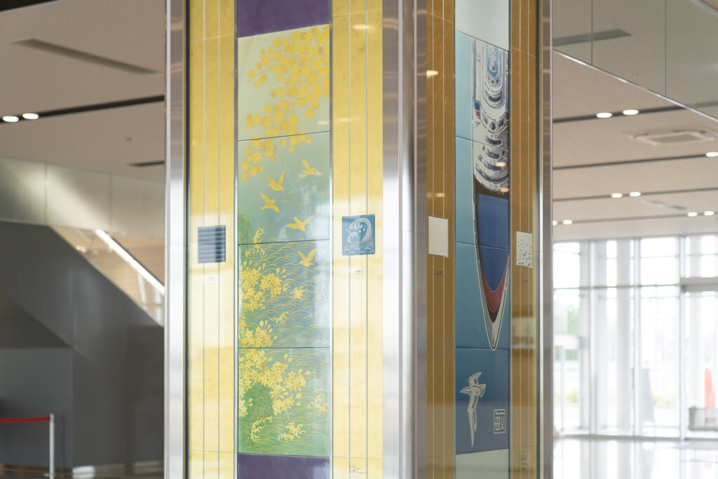 高さ4.2mの柱には、九谷焼、加賀友禅、輪島塗、山中漆器、金沢漆器など、石川を代表する伝統工芸が贅沢に施され、まるで美術館のような空間が広がります。