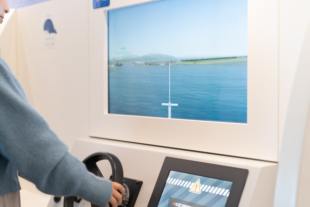 こちらは無料で気軽に体験できる、操船シュミレーター。ゲーム感覚で気軽に挑戦できるものの、ハンドル操作が意外と難しく、一筋縄ではいきません。