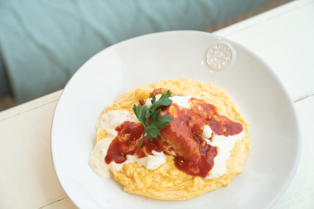 「フグのフライのせ!金沢名物シーフードハントンライス(1,480円)」は、金沢のソウルフードであるハントンライスをベイアルセ風にアレンジした一皿。石川県産のフグを使った一口サイズのフライは、食べやすさも魅力です。サクサクとした衣の食感と、とろとろの卵が絡み合い、口の中ふわっと広がる旨味が絶妙でした。