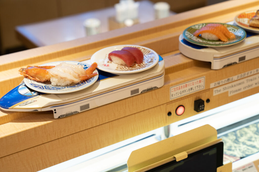 夕食は、金沢港口から徒歩1分という好立地にある「金沢回転寿司 輝らり」へ。毎朝、金沢港や氷見港から仕入れる新鮮なネタを使ったお寿司が自慢です。注文を受けてから握られるお寿司は、鮮度抜群で、魚本来の旨みがひと口ごとに広がります。また、北陸新幹線を模したレーンでお寿司が運ばれてくるユニークな仕掛けも楽しみのひとつ。