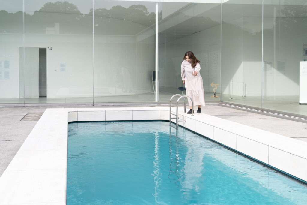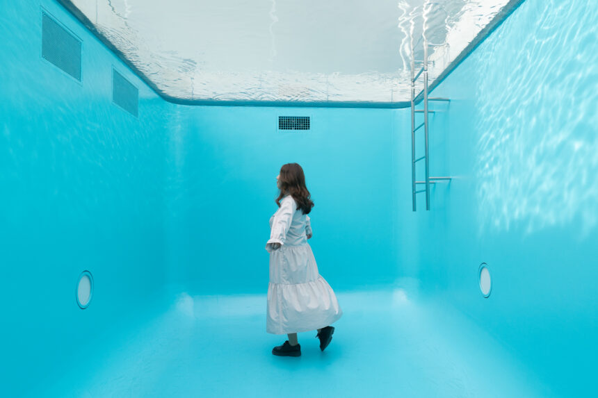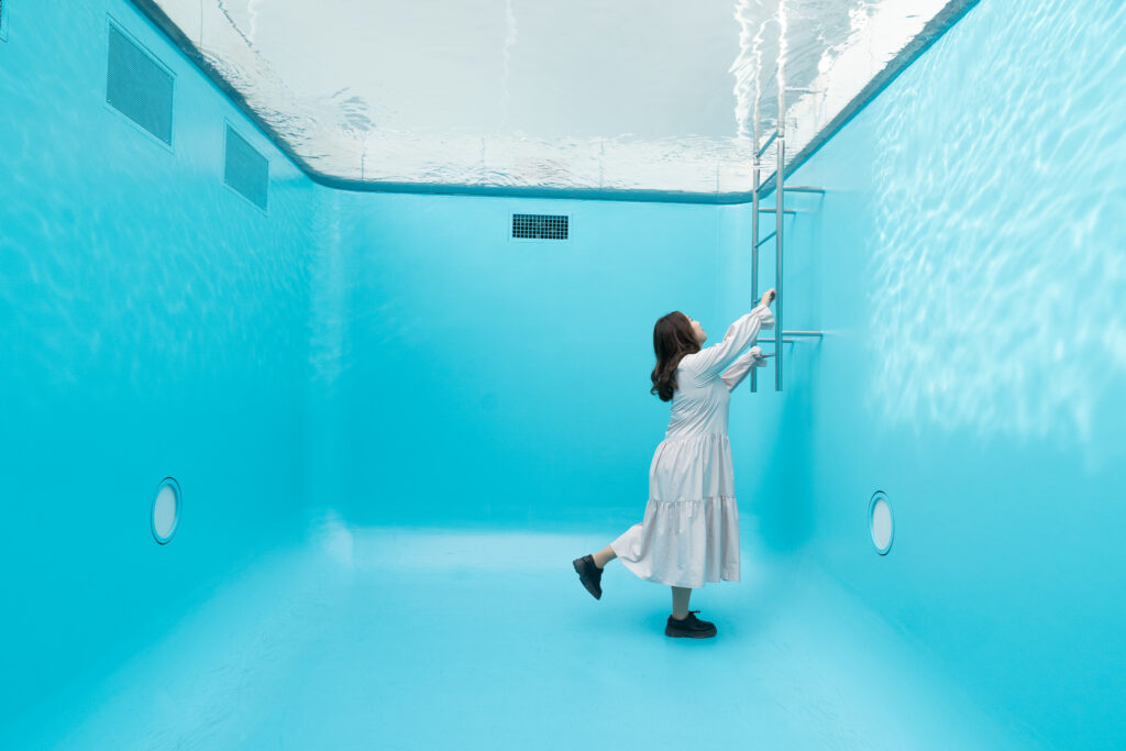 人気作品《スイミング・プール》は、まるで水中にいるような感覚を味わえる不思議な体験型アート。上を見上げたり、外から人々を見下ろしたりと、視点が変わるたびに新しい驚きが生まれます。