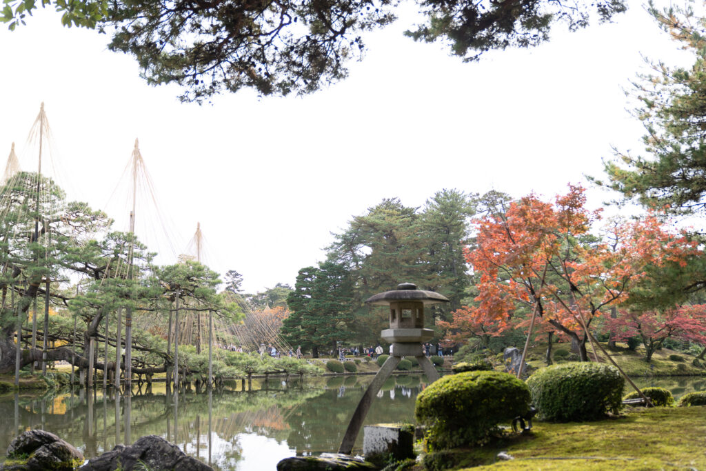 兼六園のシンボル「徽軫灯籠(ことじとうろう)」は、訪れたらぜひ記念撮影をしてくださいね。