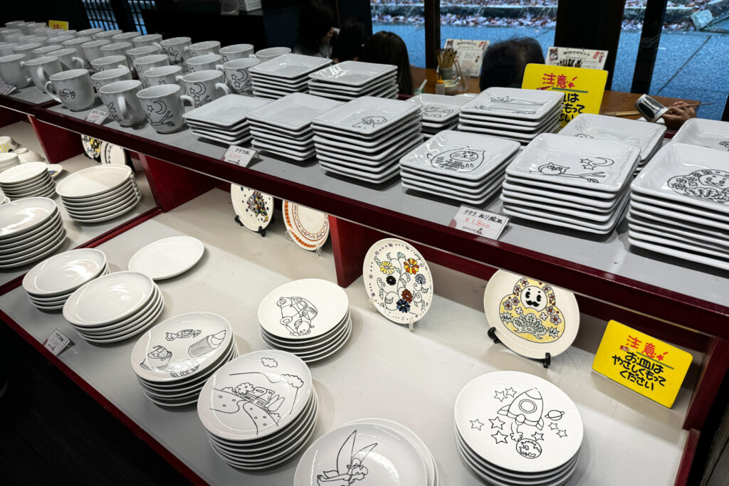 湯呑み、マグカップ、お皿等の中から好きなものを選んだら、さっそく絵付けをしていきます。