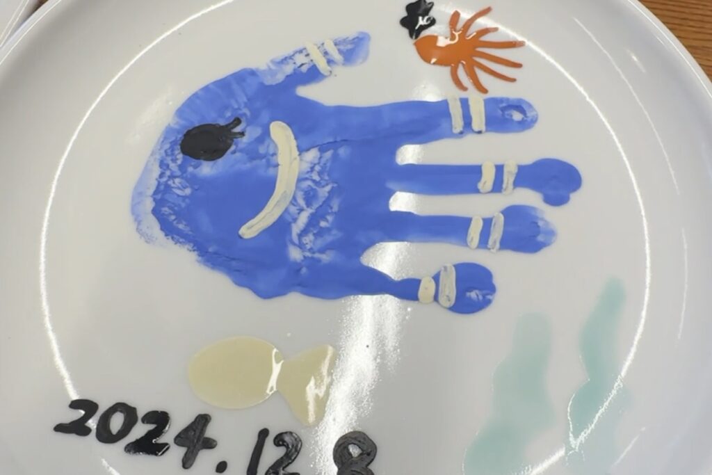 子どもでも絵付けしやすい「塗り絵」タイプと、子どもの今のサイズを記録として残しておける「手形」タイプを選びました。
