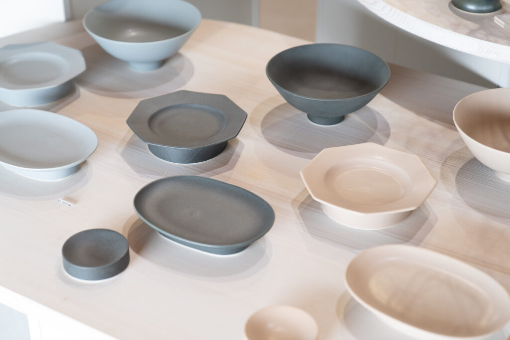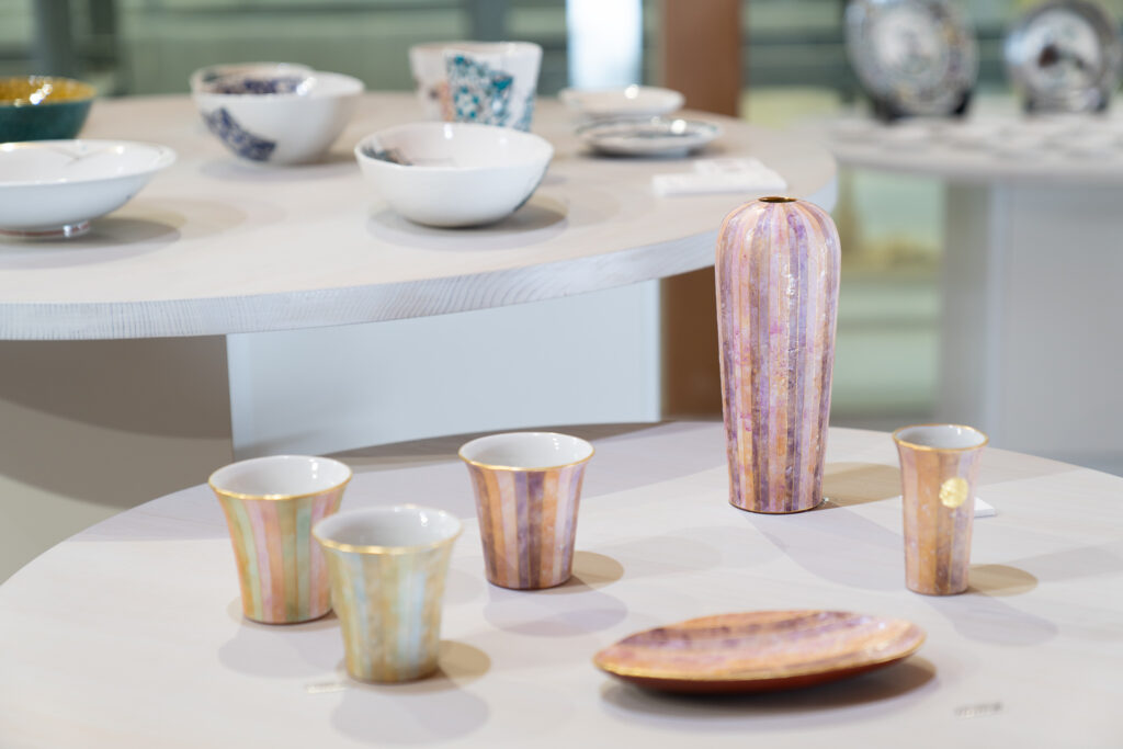 なかには若手作家をの革新的な作品も。形やデザインには斬新なアプローチが施されており、九谷焼が持つ可能性の広がりを感じます。