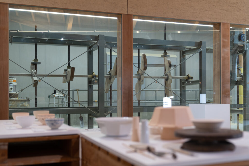 ここでは、九谷焼の素地となる粘土づくりの工程を途中まで間近で見学できます。