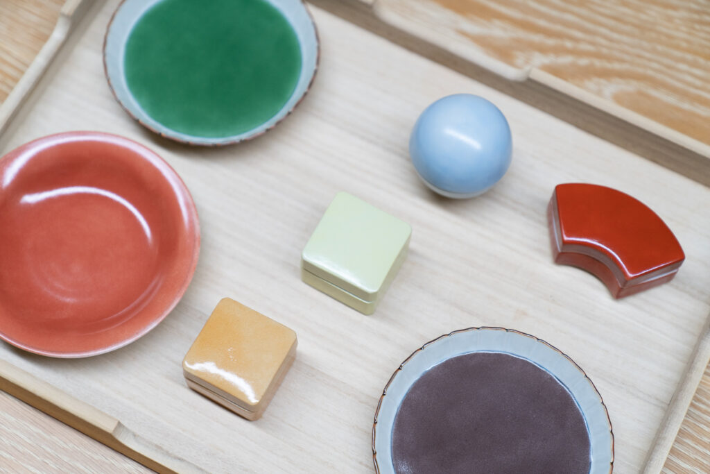 ずらりと並ぶ九谷焼の器たちは、どれも愛らしく、それぞれに異なる表情を持っています。ひとつひとつ手に取るたびに、どれにしようかと心が揺れ、迷う時間さえも心地よいものに……。