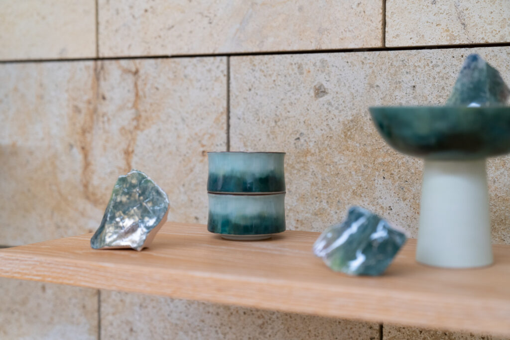ギャラリーには、錦山窯の作品が美しく並び、まるで美術館のような静謐な空間が広がっています。