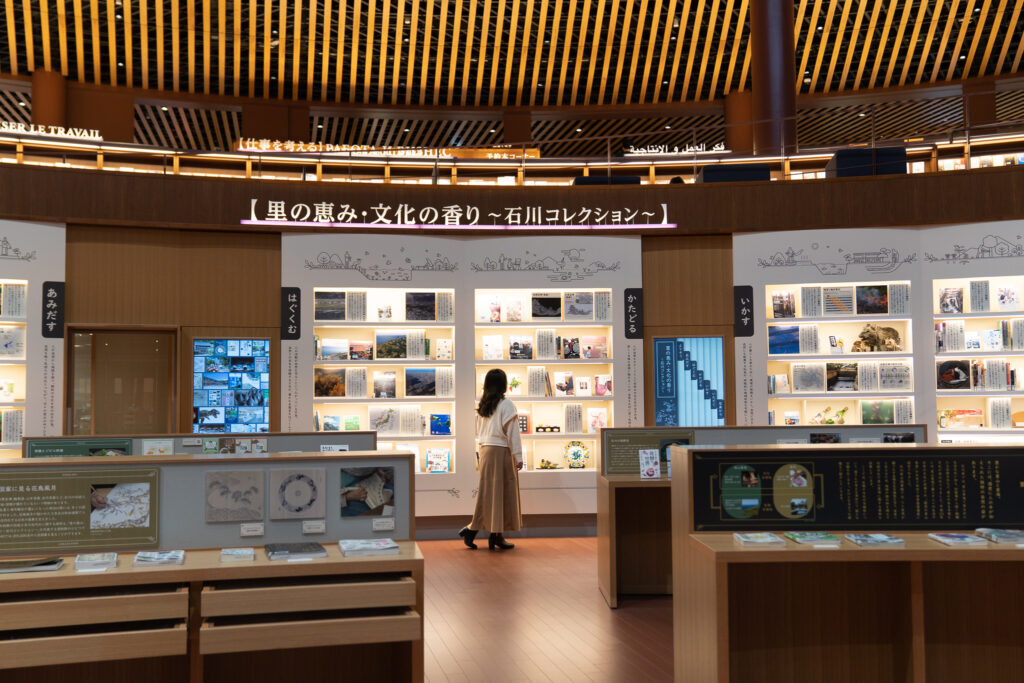1階の閲覧エリアには「里の恵み・文化の香り〜石川コレクション〜」のコーナーが。