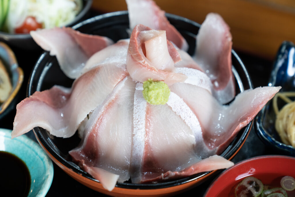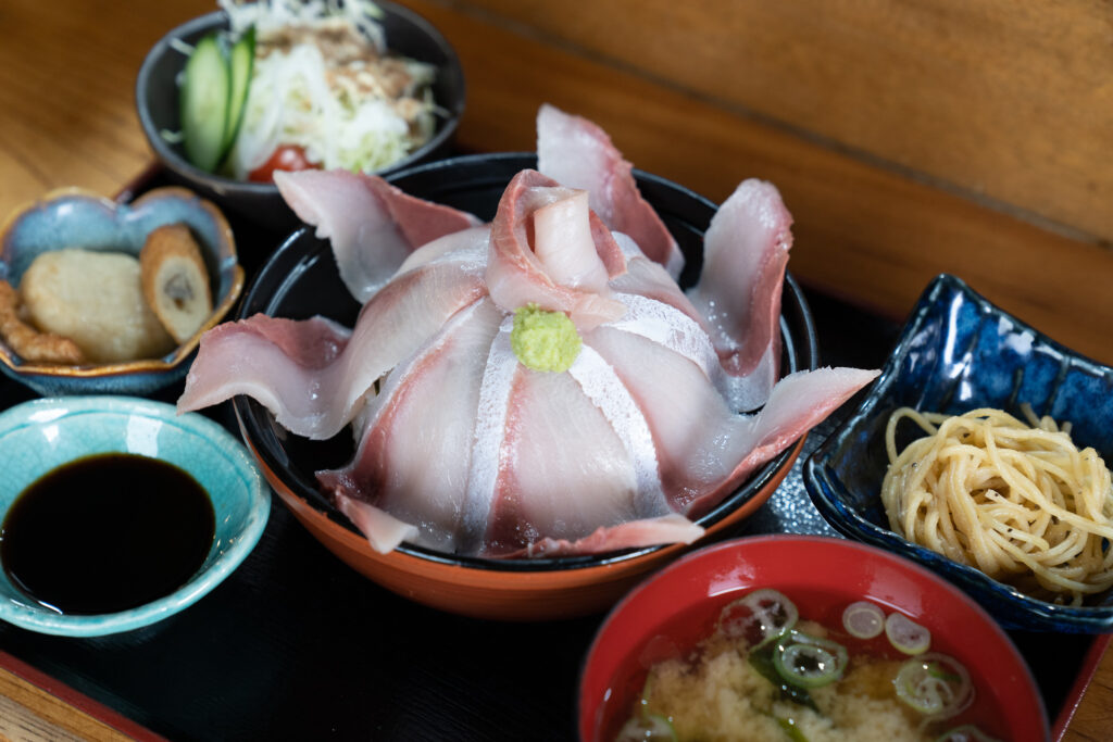 テーブルに運ばれてきた丼には、艶やかに輝く分厚いブリの切り身が惜しげもなく敷き詰められ、その豪快なビジュアルに思わず見惚れてしまいました。