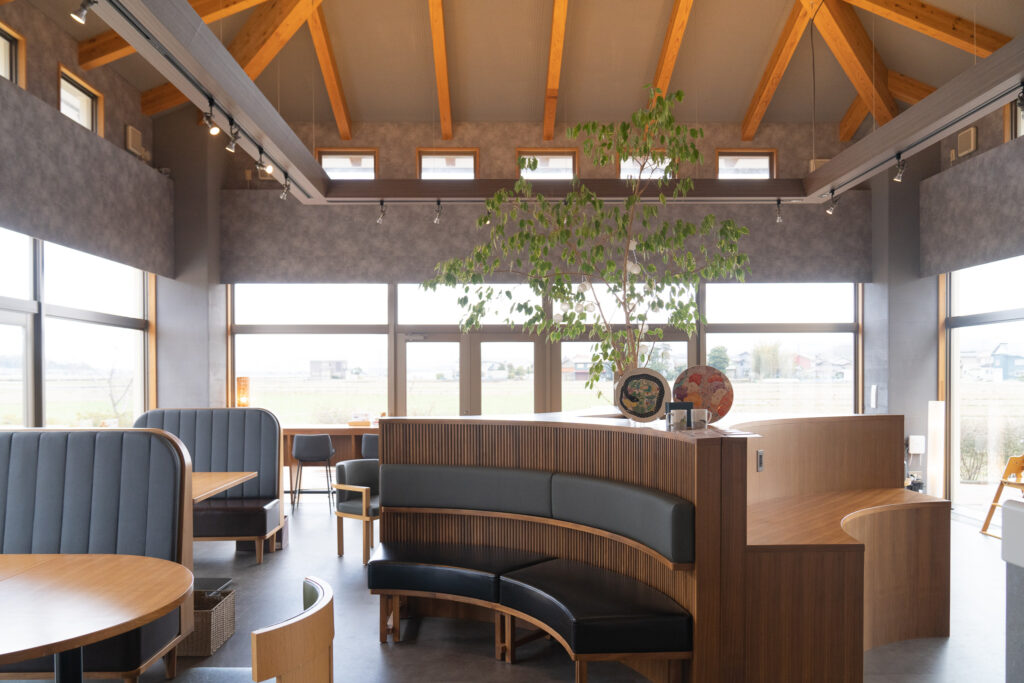 目の前には、一面に広がる田園風景。晴れた日には、遠くに白山の雄大な姿も望めるのだそう。
